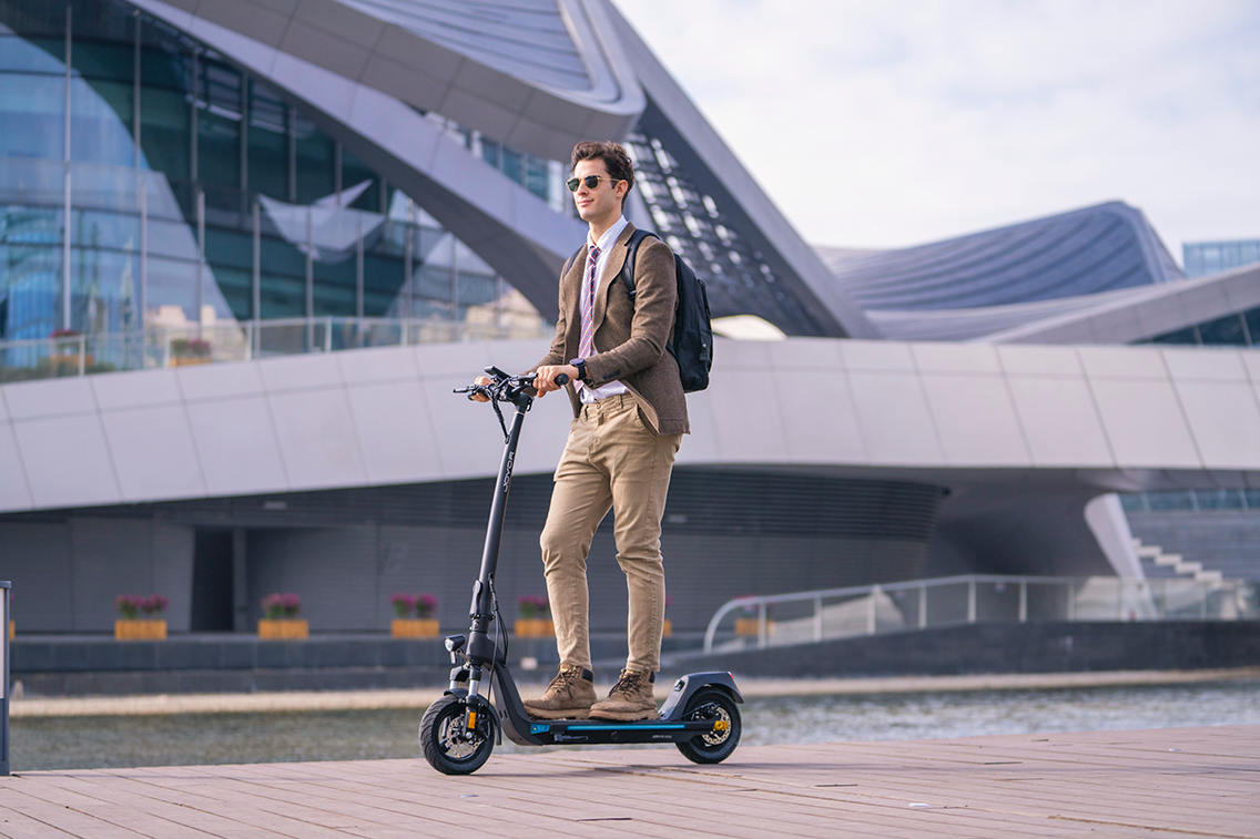 Stabile e confortevole: gli pneumatici da 10" e le sospensioni della Joyor C10 affrontano le strade cittadine senza problemi.